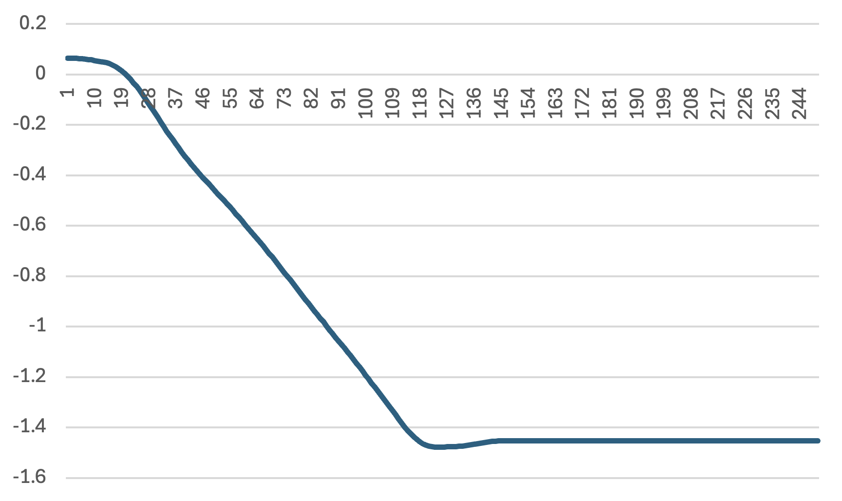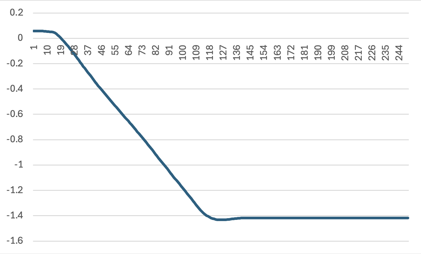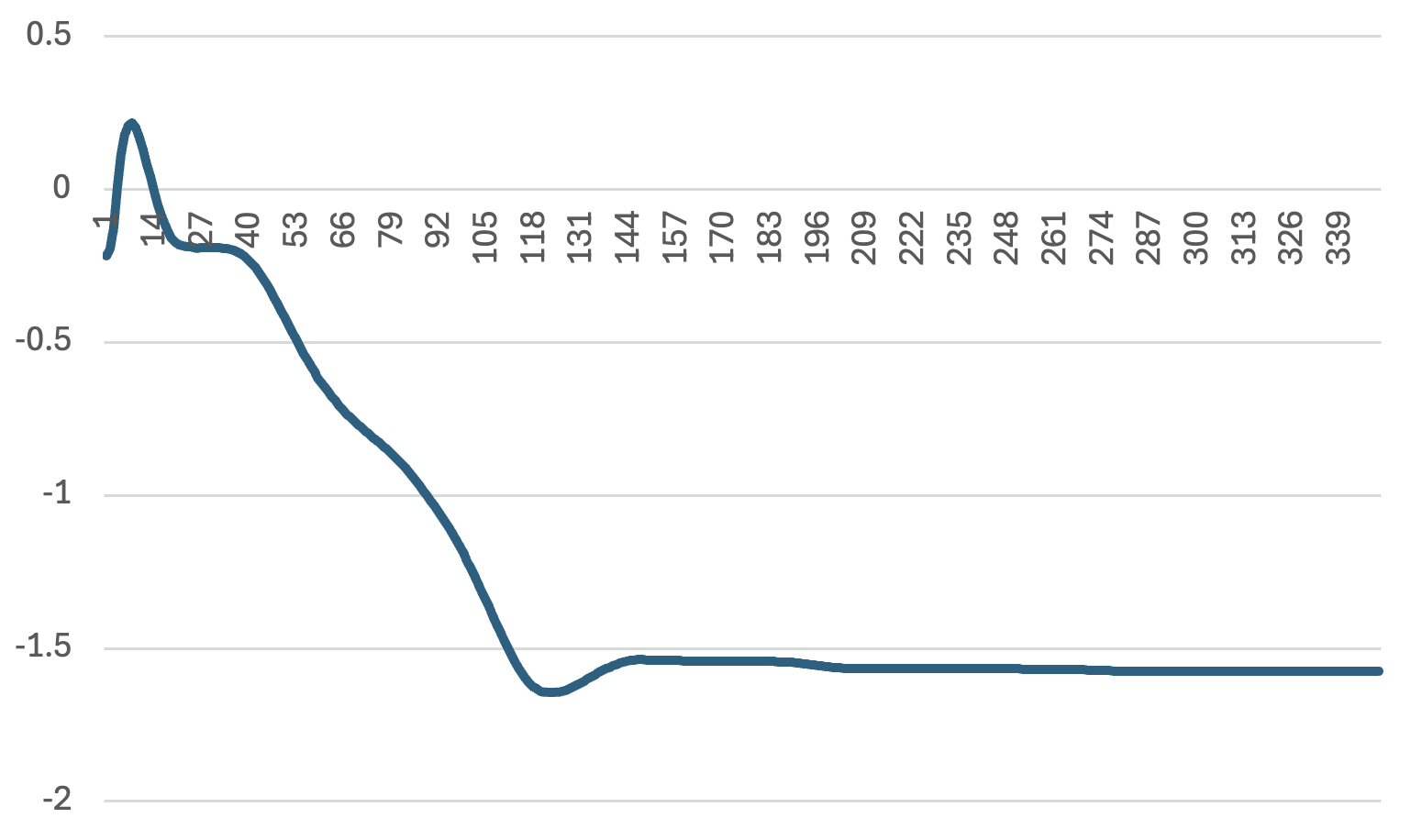 この写真の状態で安定します。このときのR_SHOULDER_PITCHの角度をログに出力して確認してみましょう。まずは実機の様子とグラフを見てみます。